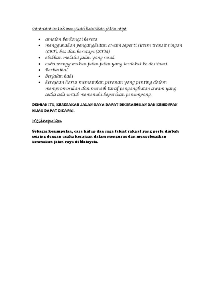 Langkah mengurangkan kemalangan jalan raya. Kemalangan jalan raya ialah peristiwa ngeri yang biasanya melibatkan perlanggaran dua kenderaan atau lebih di jalan raya atau pun lebuh raya. Sebagai makluman, saya tidak menggalakkan pelajar menyalin karangan di bawah tanpa membuat sebarang penambahan istilah atau kata, penambahan frasa menarik, ayat kbat (unsur kemahiran berfikir aras tinggi), ayat penegas, ayat rangsangan, sebagaimana terdapat dalam jadual pengembangan idea perenggan pengenalan, perenggan isi dan perenggan penutup. Jul 09, 2021 · koleksi soalan peperiksaan percubaan pt3 + skema jawapan (format baharu) (terkini). Cara mengatasi kemalangan jalan raya. Kemalangan sebegini biasanya boleh membawa kecederaan dan juga kematian.